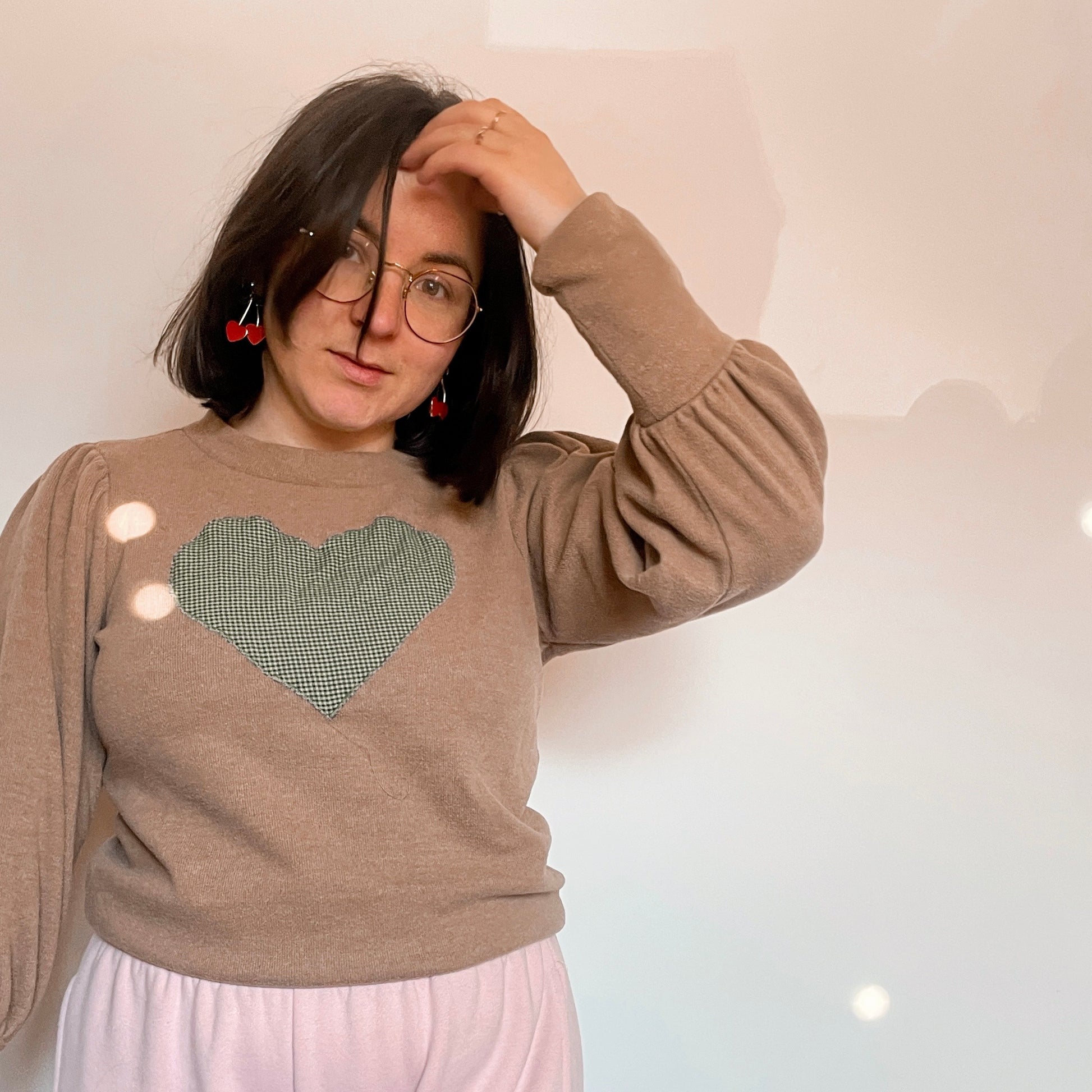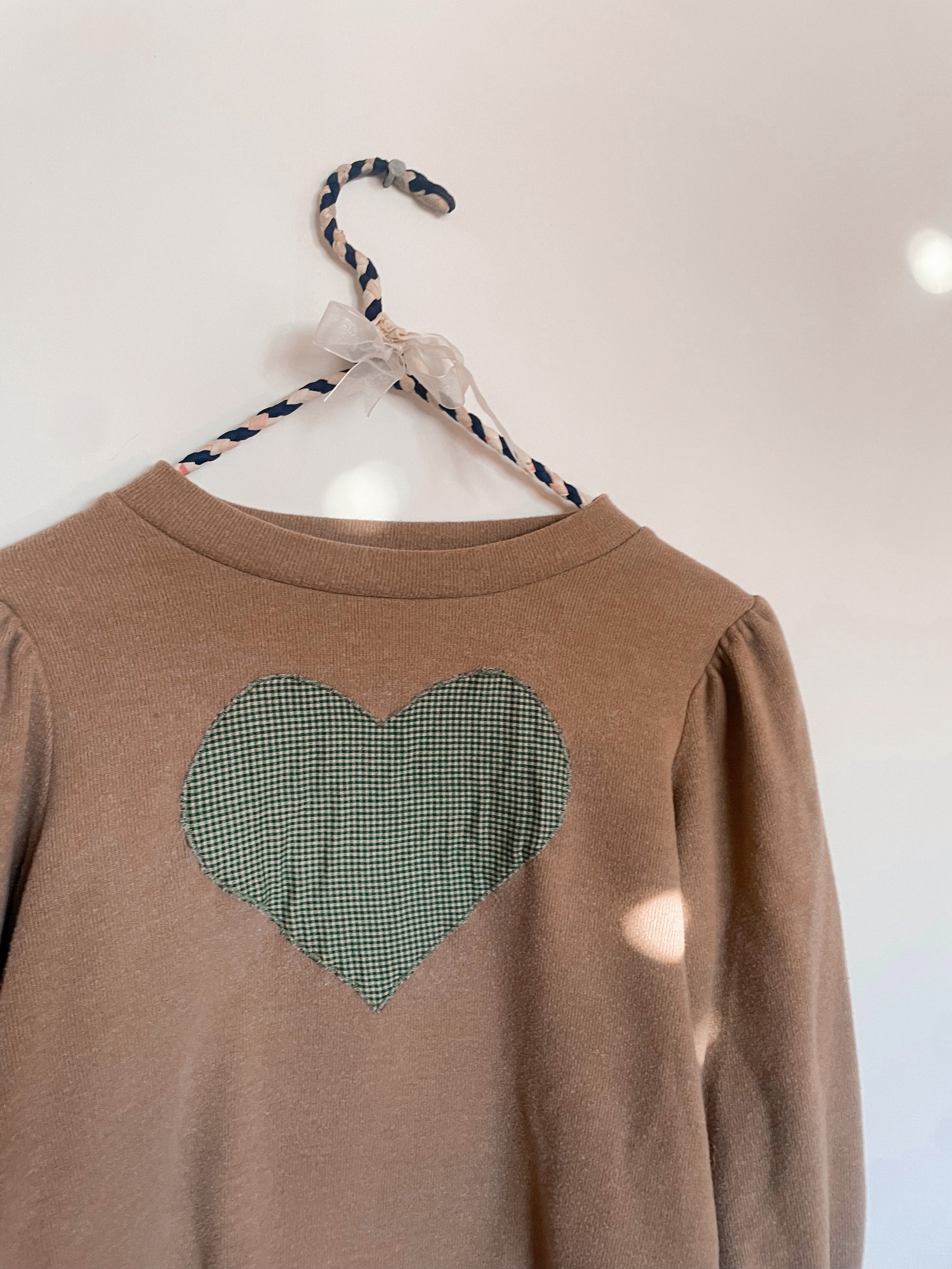 Heart patchwork on a thrifted crewneck