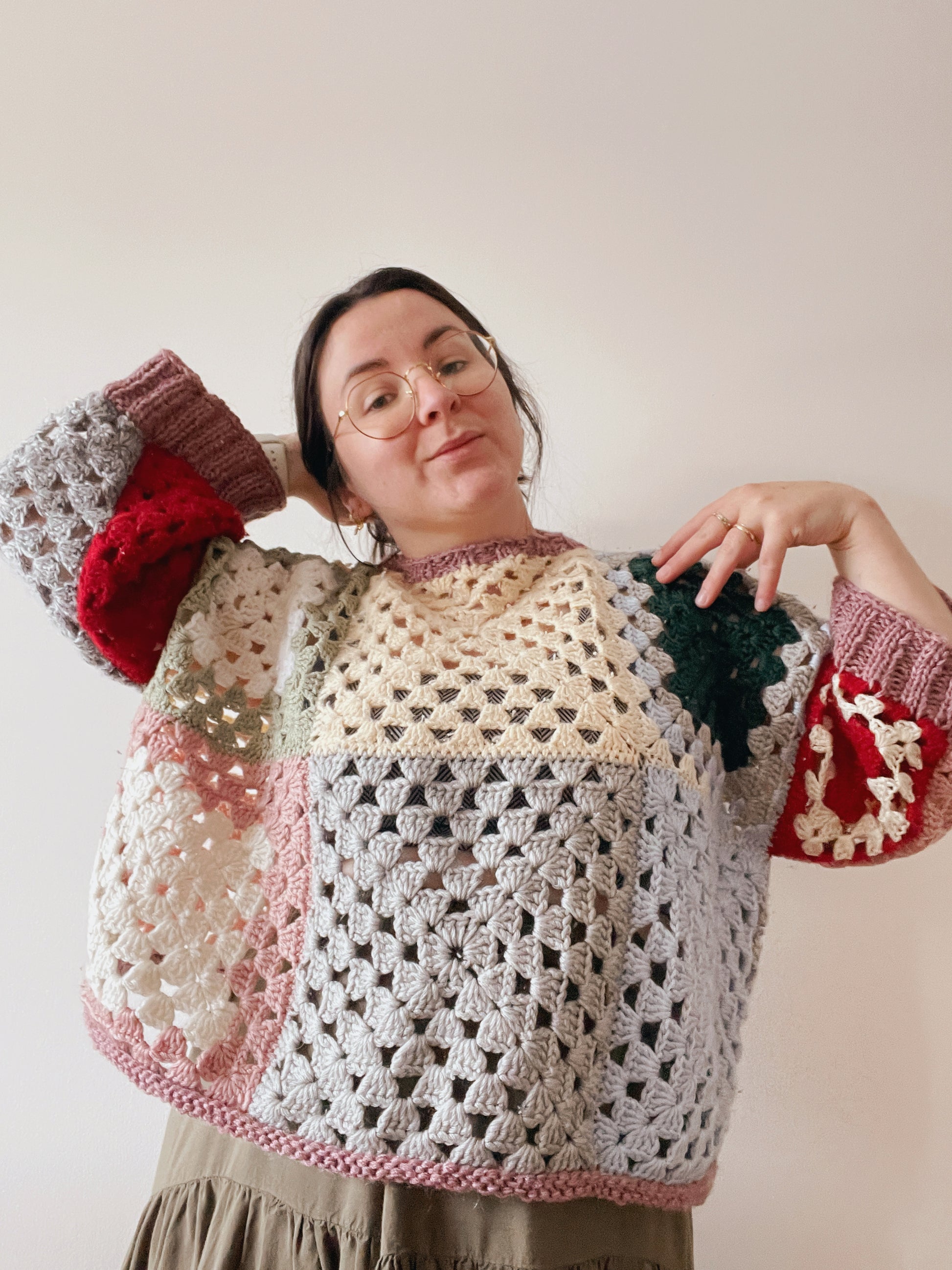Thrifted blanket transformed in a gorgeous reversible sweater