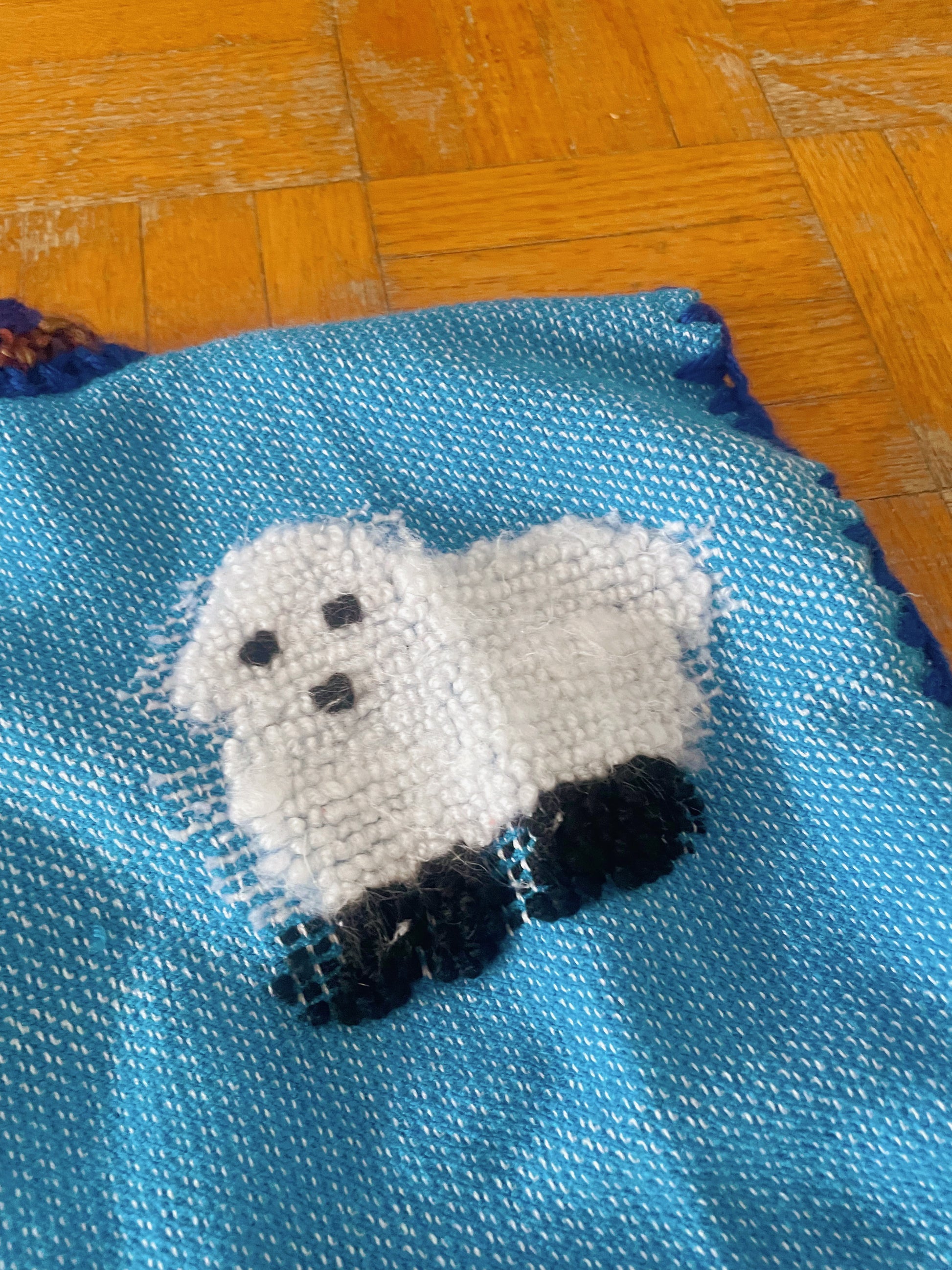 Thrifted blanket transformed in a reversible sweater